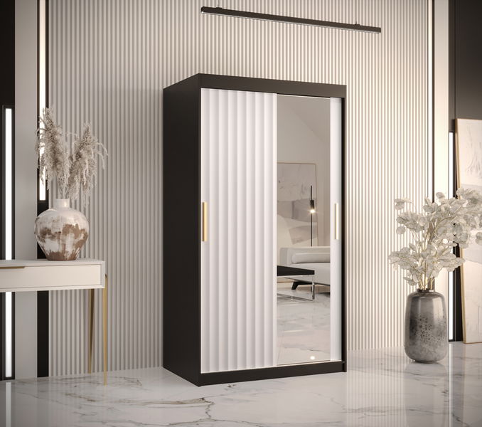 - Dulap de haine cu oglindă 120 cm Riana Wa 2 120 (negru + alb mat)