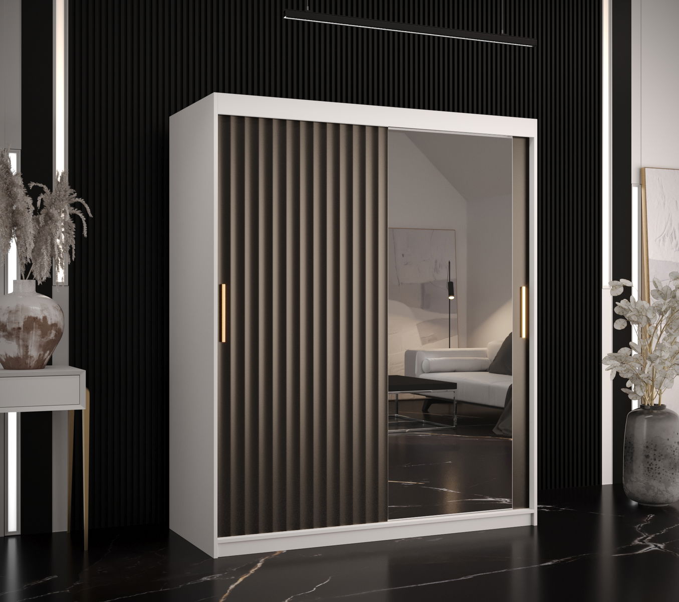 - Dulap de haine cu oglindă 150 cm Riana Wa 2 150 (alb + negru)