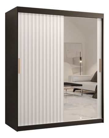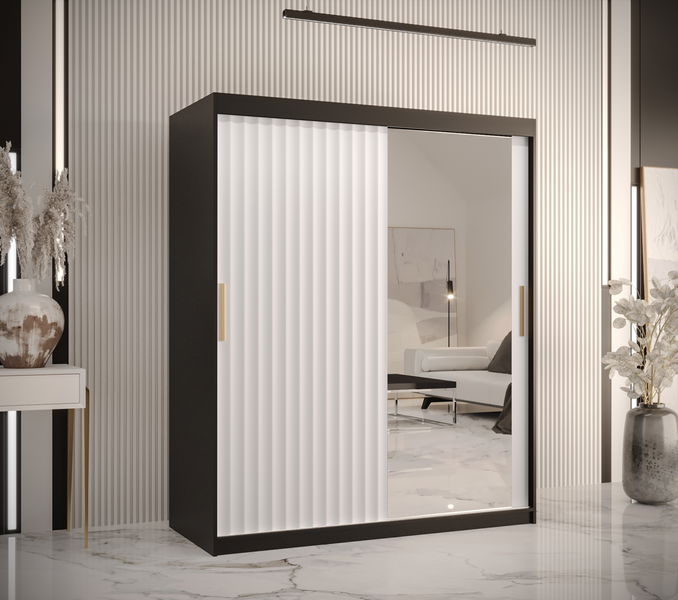Dulap de haine cu oglindă 150 cm Riana Wa 2 150 (negru + alb mat)