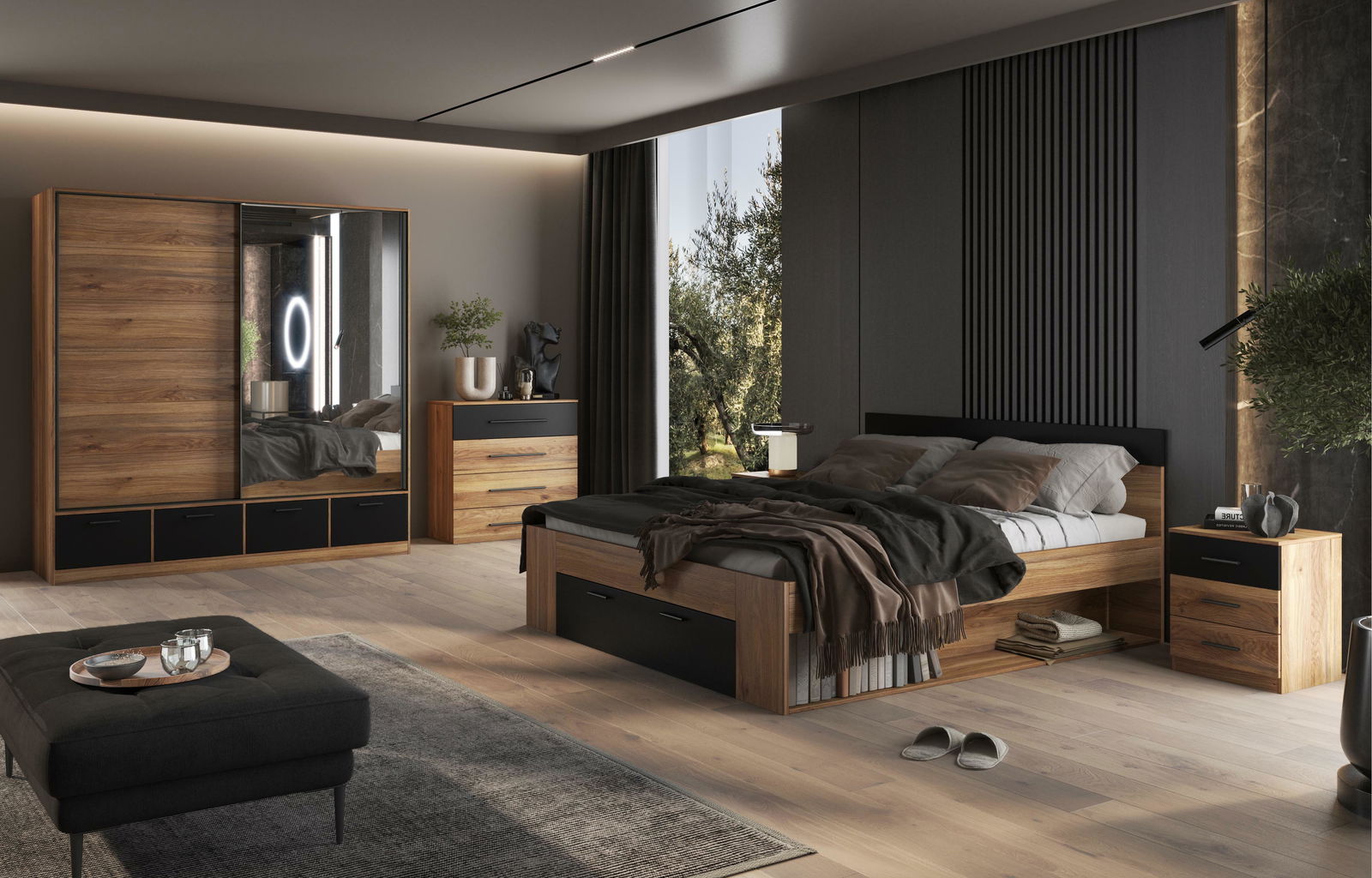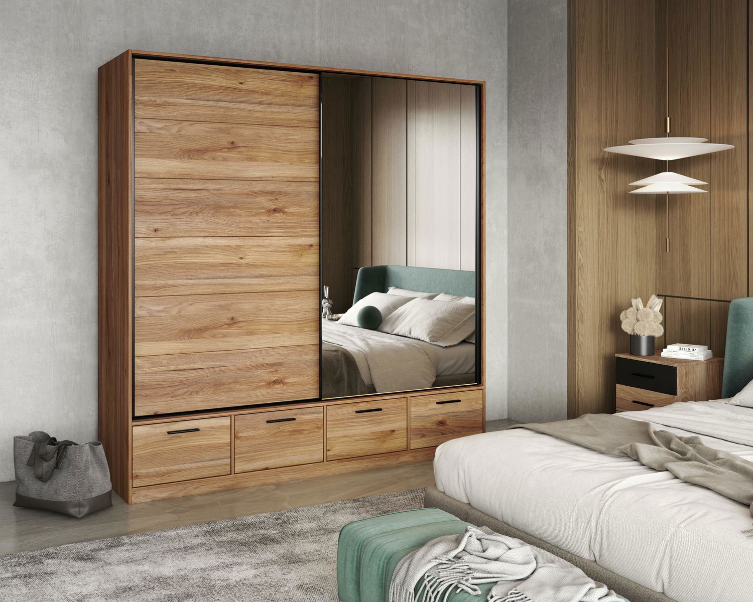 - Dulap de haine cu uși culisante Benson MA62 (stejar mauvella) (cu oglindă)