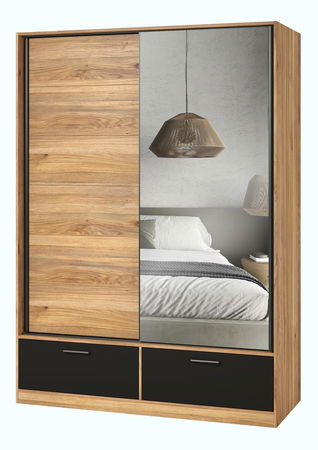 Dulap de haine cu uși culisante Benson MW61 (stejar mauvella + negru) (cu oglindă)