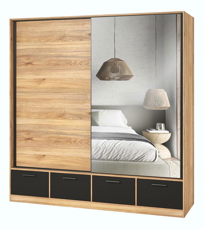 Dulap de haine cu uși culisante Benson MW63 (stejar mauvella + negru) (cu oglindă)