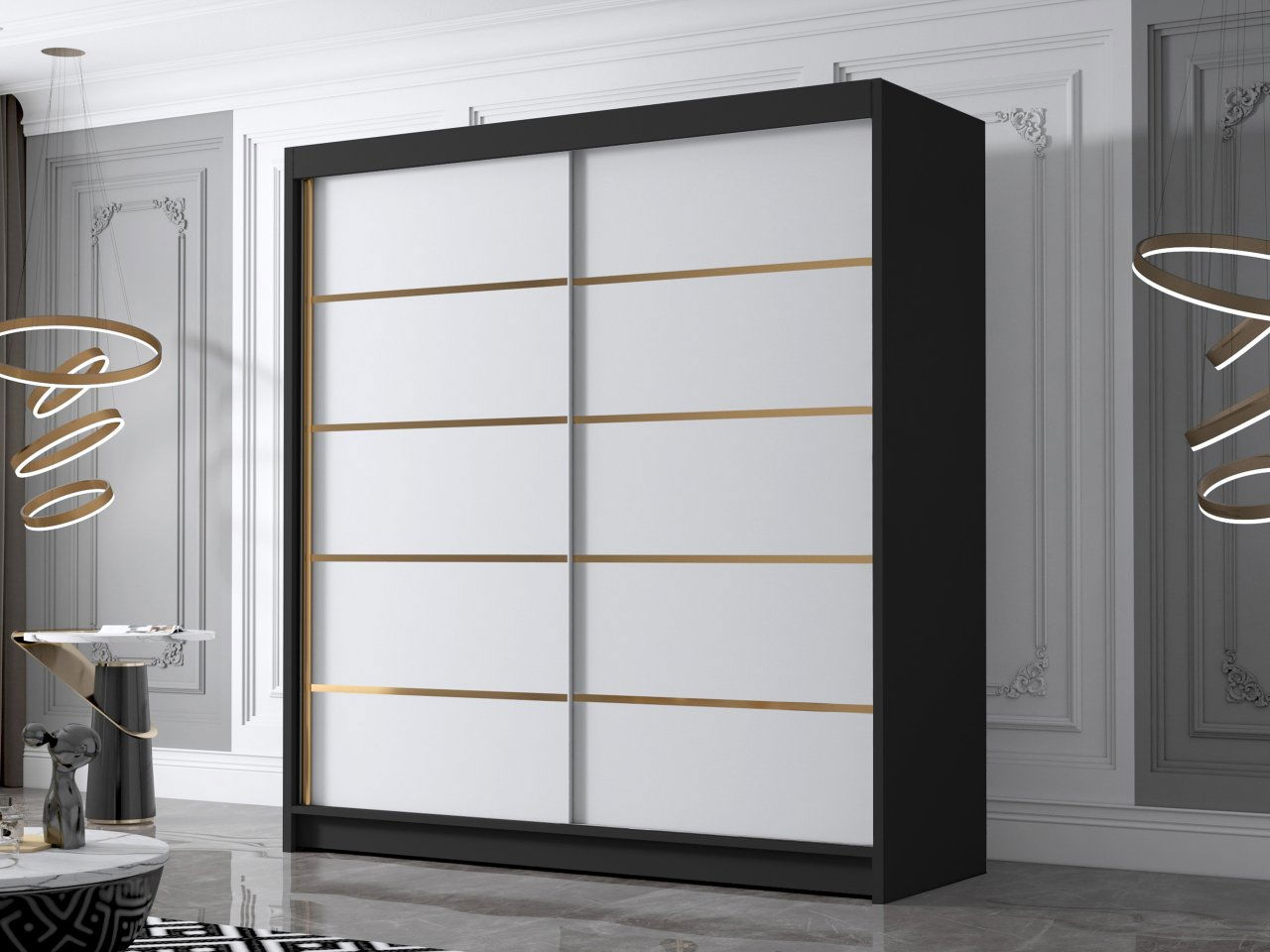 Dulap de haine cu uși culisante Bratoke IV 180 (Negru + Alb + auriu)