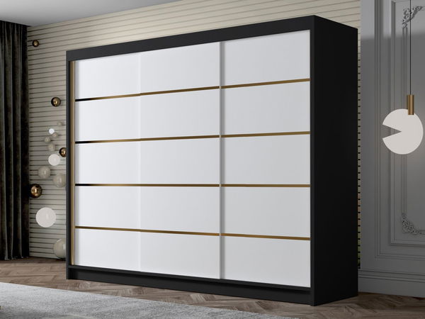Dulap de haine cu uși culisante Fozzurt VII 250 (Negru + Alb + auriu)