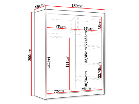 Dulap de haine cu uși culisante Hyzron IV 150 (Negru + auriu)