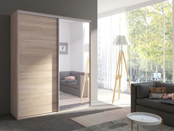 Dulap de haine cu uși glisante Gantera 1 B (Stejar sonoma) (cu oglindă)