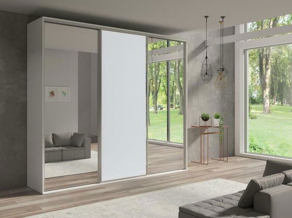 Dulap de haine cu uși glisante Gantera 2 C (alb) (cu oglindă)