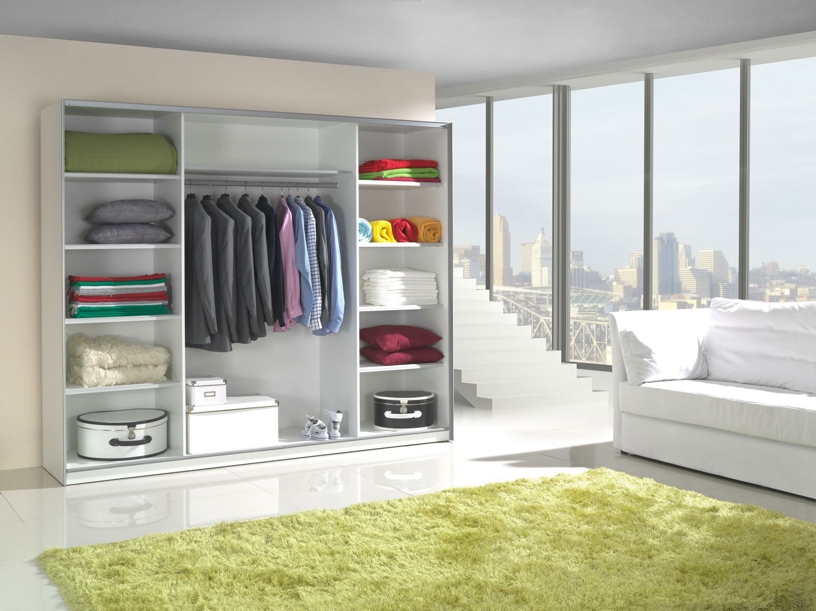 Dulap de haine cu uși glisante Laurenia (alb) (cu oglindă)