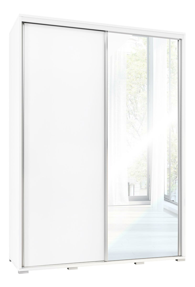 Dulap de haine cu uși glisante Peldon 155 (alb) (cu oglindă)