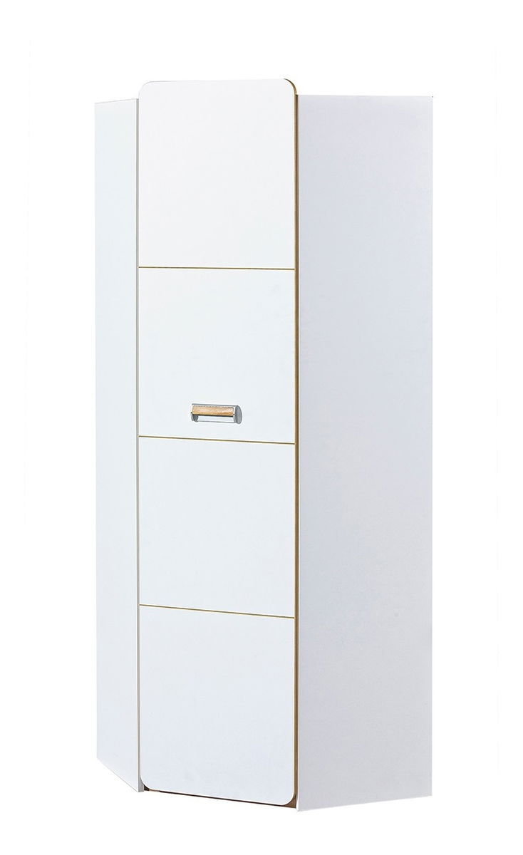 Dulap de haine pe colț vă oferă mult spațiu de depozitare pentru haine și accesorii. Un design modern și simplu este completat cu o margine decorativă colorată. Dulapul de haine este potrivit pentru amenajarea camerei studenților și a copiilor.