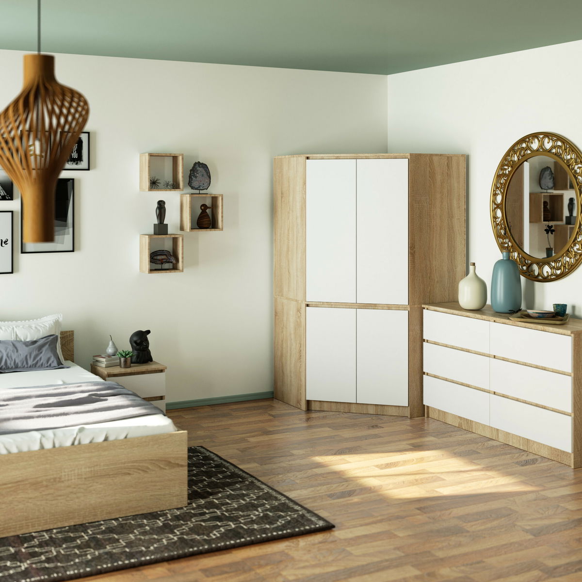 Dulap de haine de colț Sumergible (stejar sonoma + alb)