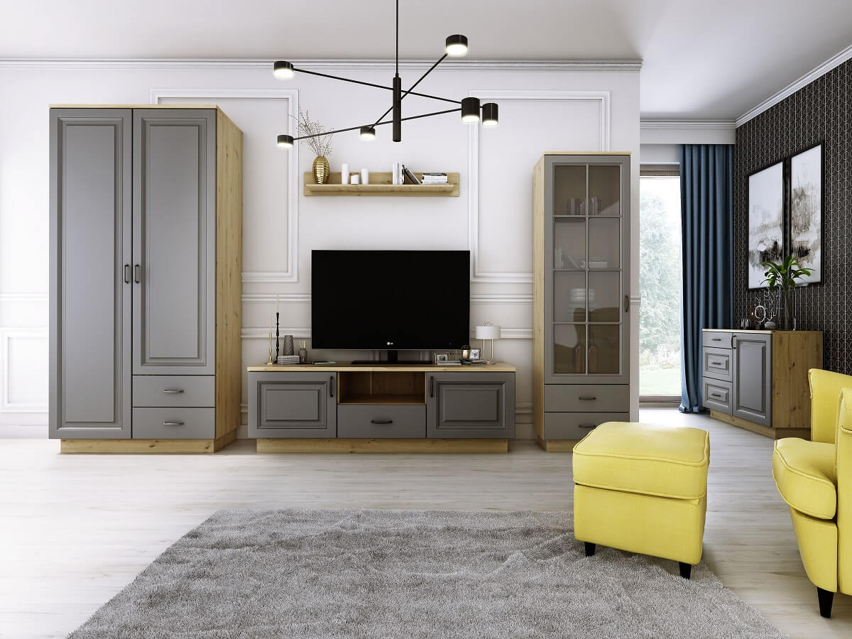 Dulap de haine Flaminia 3D2S (Stejar artisan + grafit)