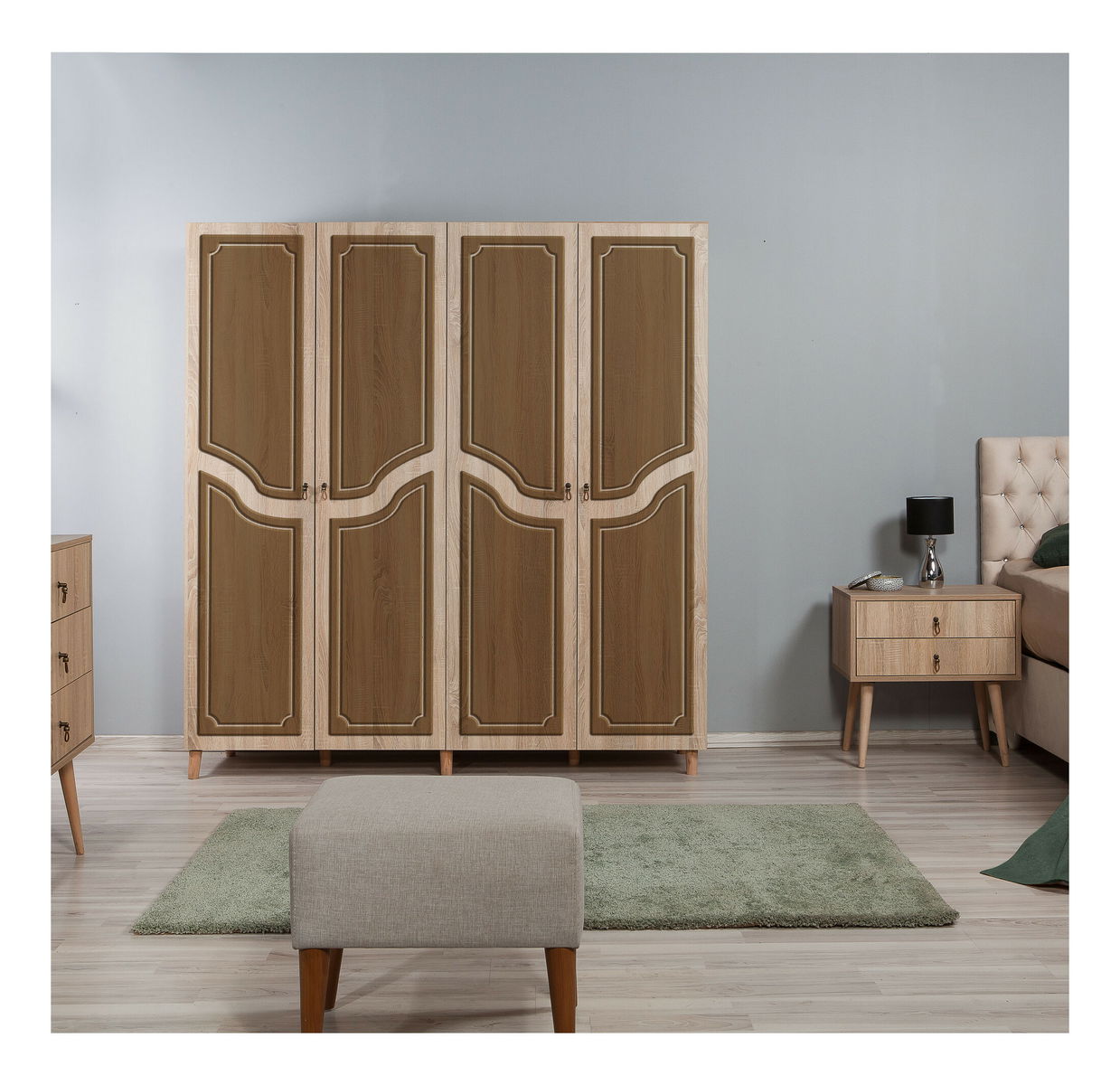 grosime: 18 mm, picioare crap, mânere metalice, strat UV, lățime: 180 cm, înălțime: 192 cm, adâncime: 52 cm, dimensiuni raft superior: lățime: 90 cm, înălțime: 30 cm, înălțime raft lateral: 47 cm, înălțime picioare: 10 cm