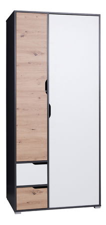 Dulap de haine Iweta SZ2D (grafit + Alb mat + Stejar artisan)