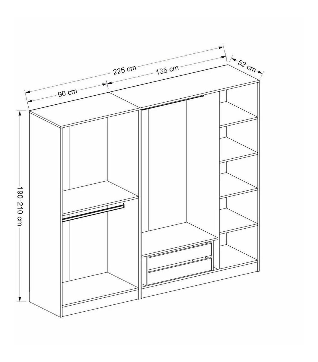 grosime: 18 mm, lățime: 225 cm, înălțime: 210 cm, adâncime: 52 cm