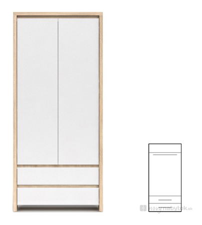 Dulap de haine Kaspian SZF2D2S (Stejar sonoma + Alb lucios)
