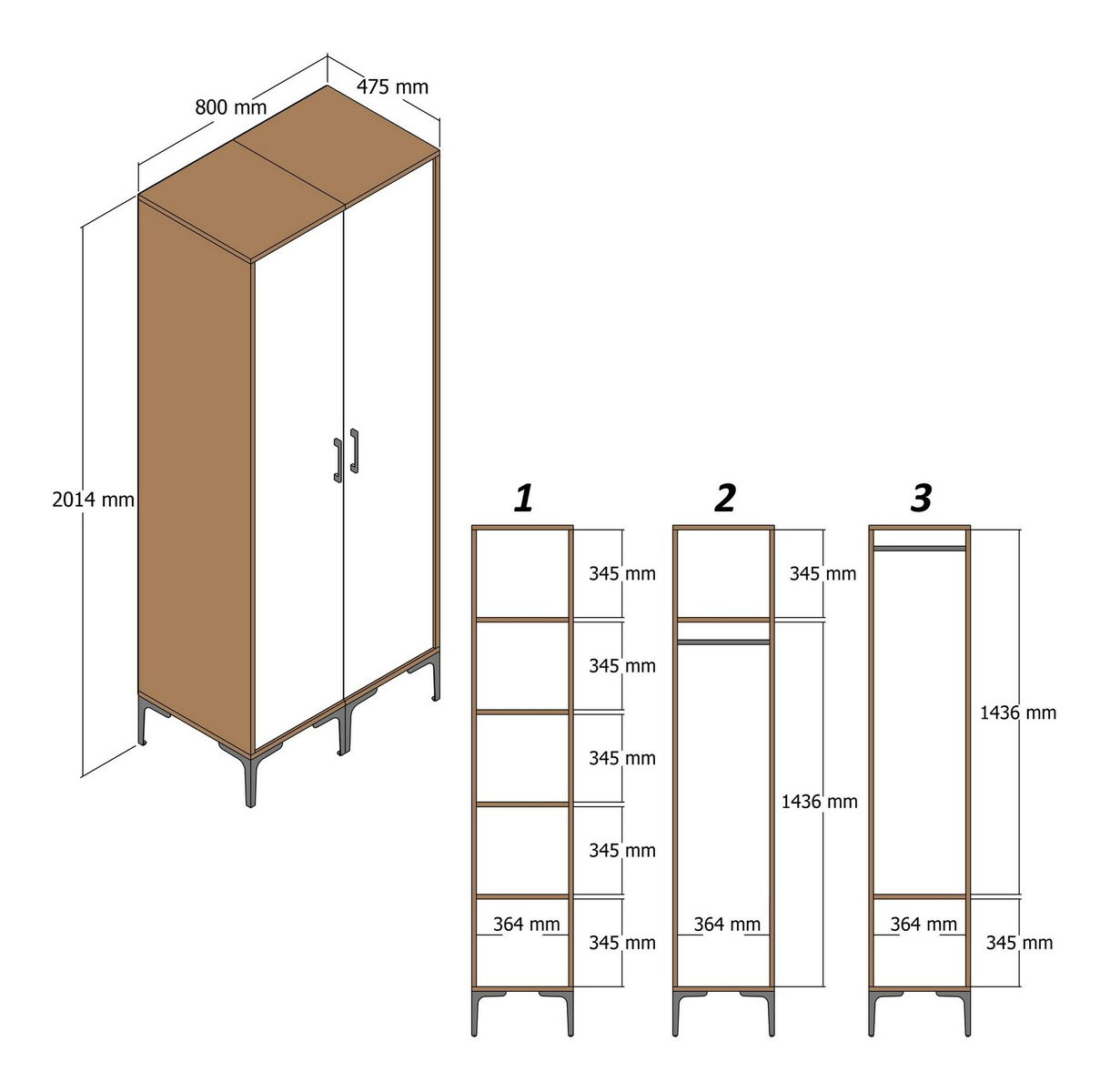 grosime: 18 mm, lățime: 80 cm, înălțime: 47,5 cm, adâncime: 201,4 cm