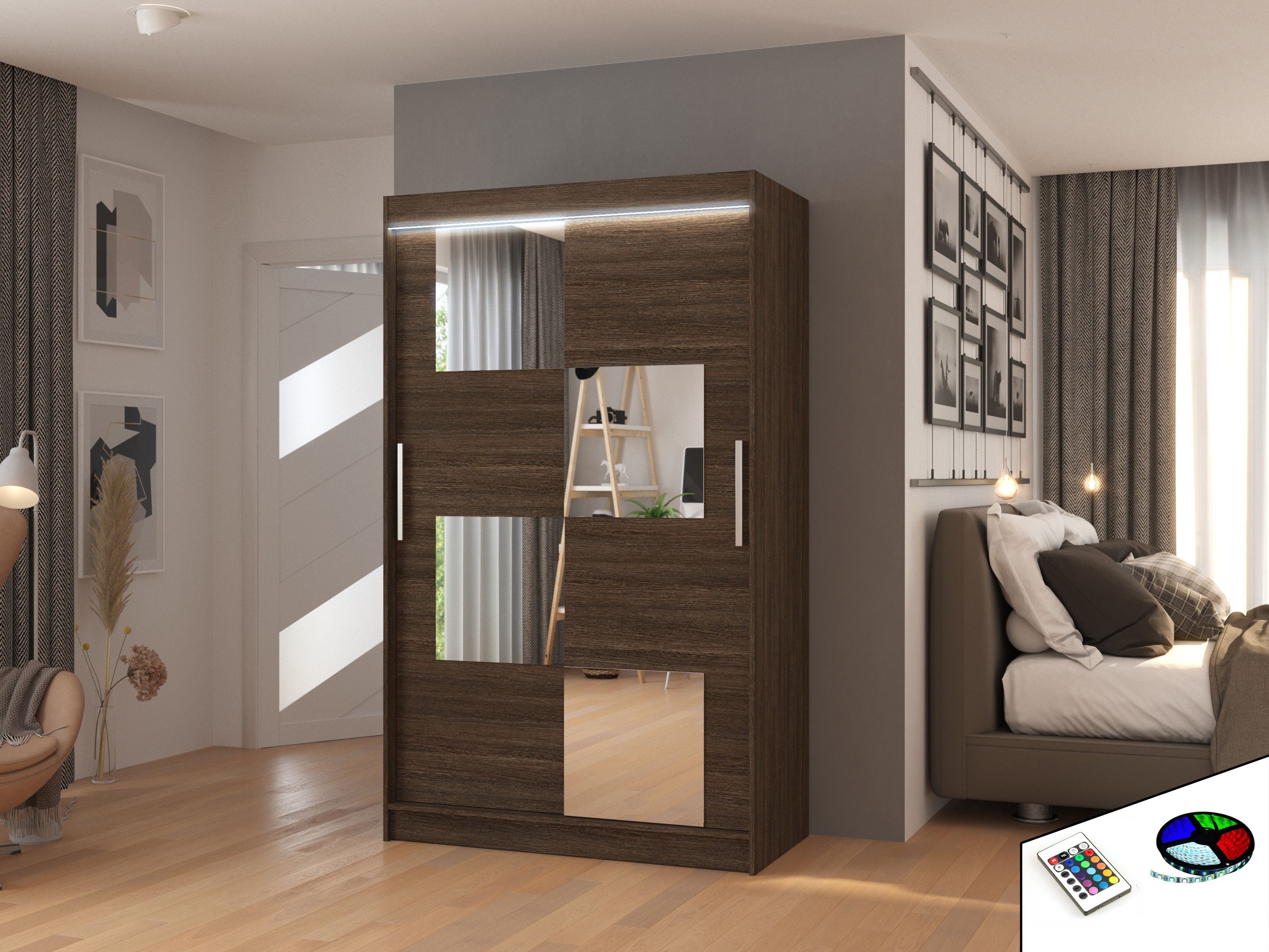 Dulap de haine Lagneo (choco) (cu iluminat LED) (cu oglindă)