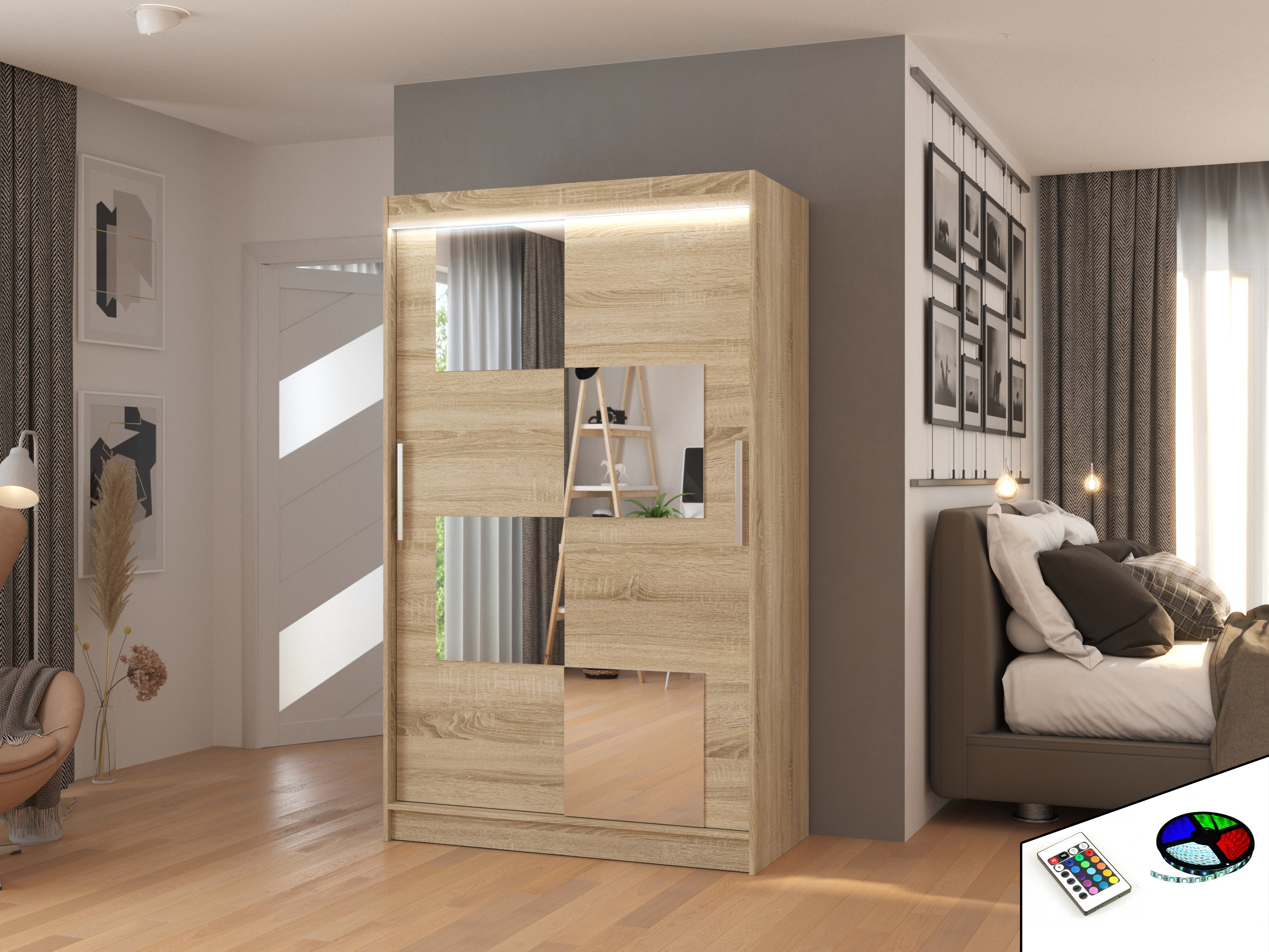 Dulap de haine Lagneo (Stejar sonoma) (cu iluminat LED) (cu oglindă)