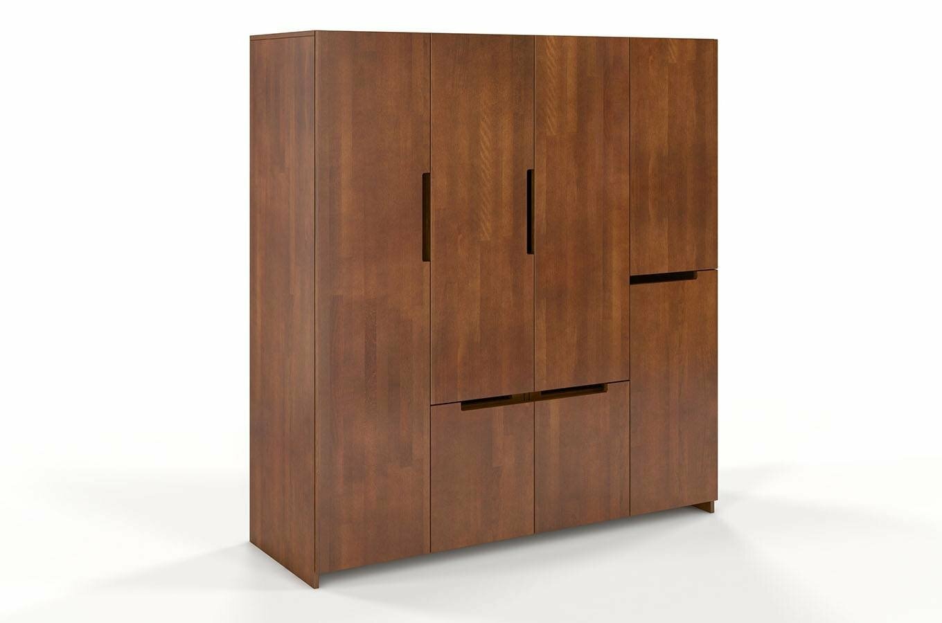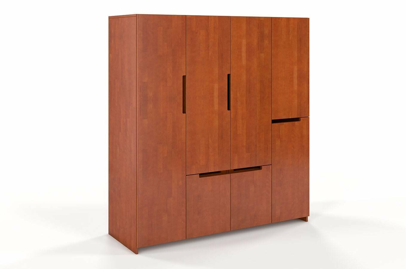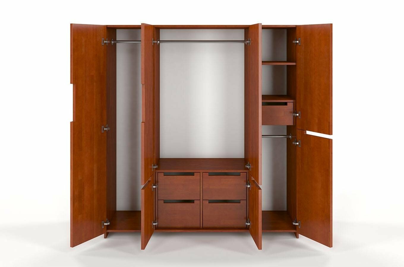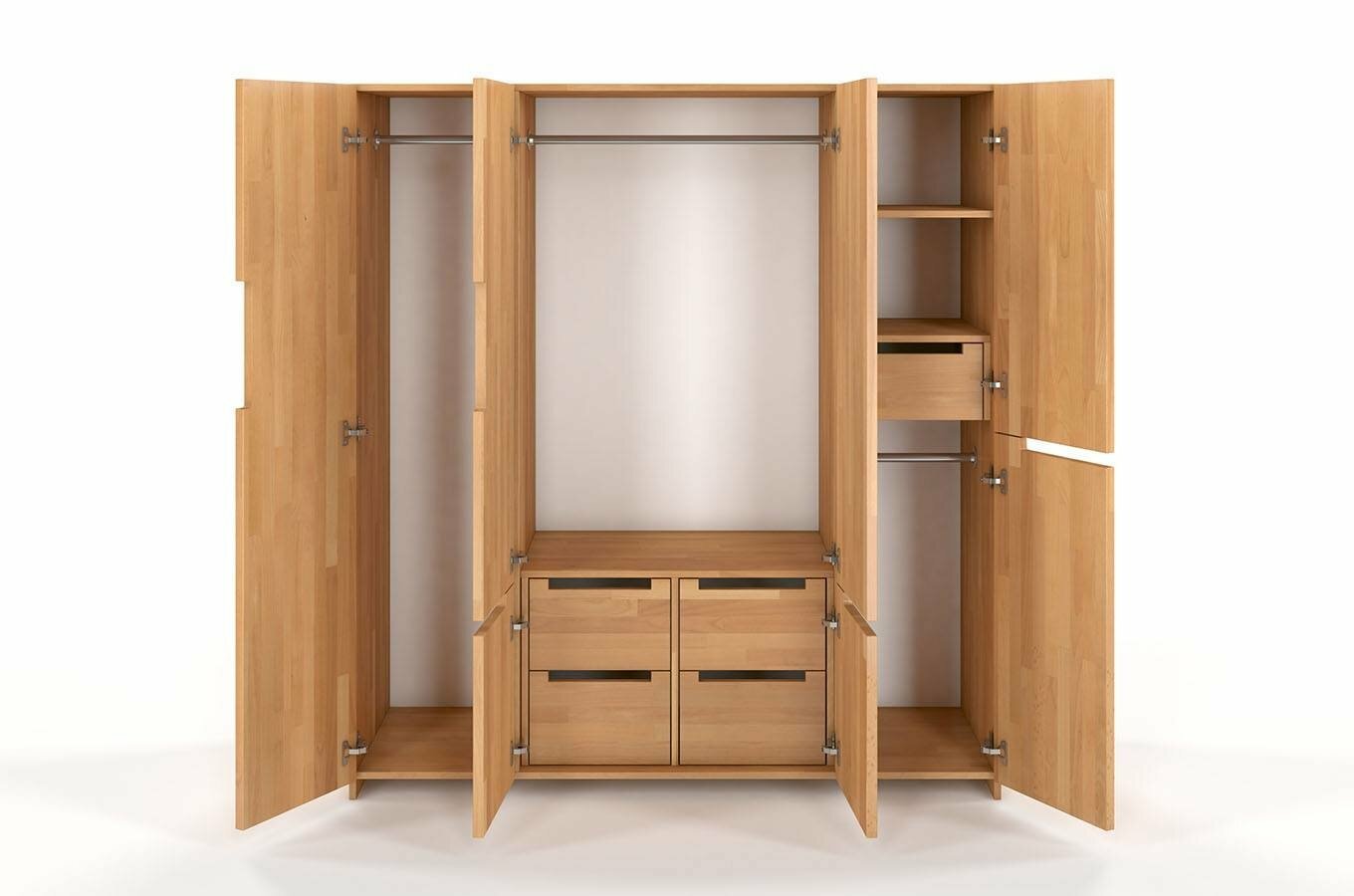 AfișeazăDulapul Larsos 4D5S din lemn de fag, vă va oferi suficient spațiu de depozitare. În total dulapul oferă 3 bare pentru umerașe, 2 rafturi și 5 sertare și spațiu de depozitare pentru lucruri mai mari.