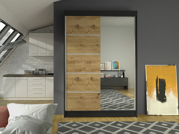 Placa laminată are grosime de 16 mm Sistemul ușilor este glisant Ghidaje din aluminiu Sevroll Mâner sub formă de bară de aluminiu de-a lungul ușii Mânerele din aluminiu împiedică îndoirea ușii > În colete veți găsi toate cele accesorile pentru asamblare și instrucțiunile de asamblare.