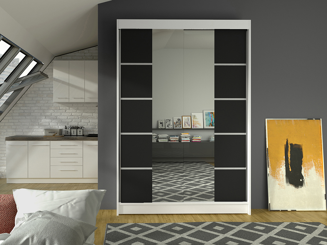 Placa laminată are grosime de 16 mm Sistemul ușilor este glisant Ghidaje din aluminiu Sevroll Mâner sub formă de bară de aluminiu de-a lungul ușii Mânerele din aluminiu împiedică îndoirea ușii > În colete veți găsi toate cele accesorile pentru asamblare și instrucțiunile de asamblare.