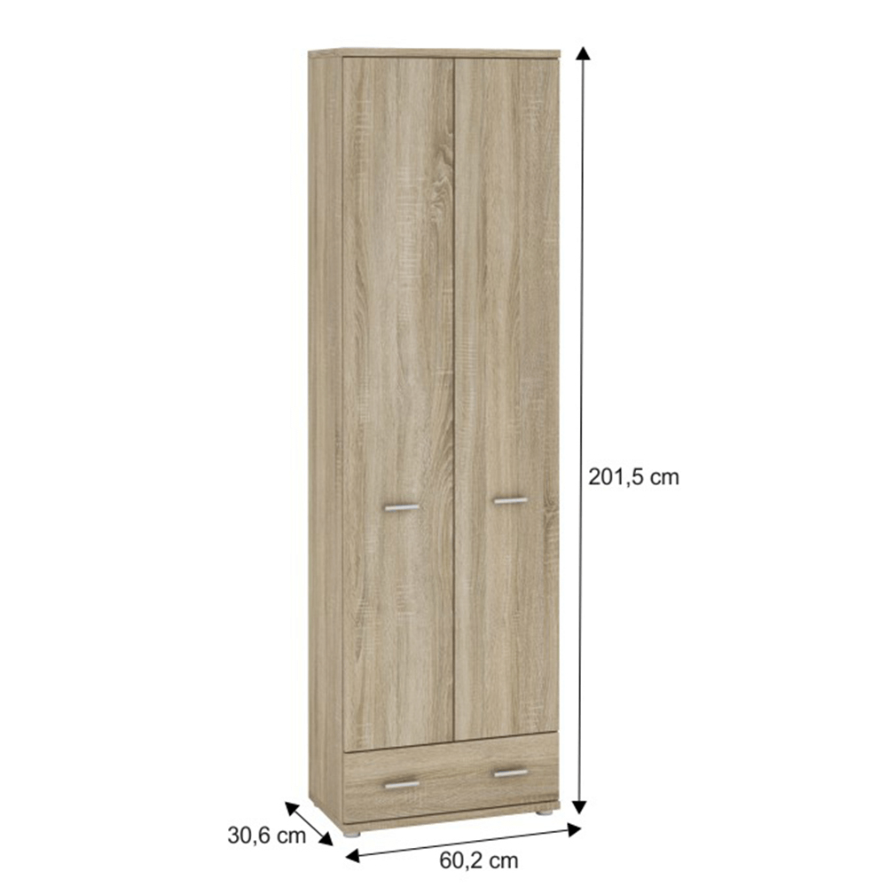Dulap ideal pentru amenajarea holului. Este fabricat dni pal laminat de înaltă calitate. Se livrează pe versiunea color de stejar sonoma.