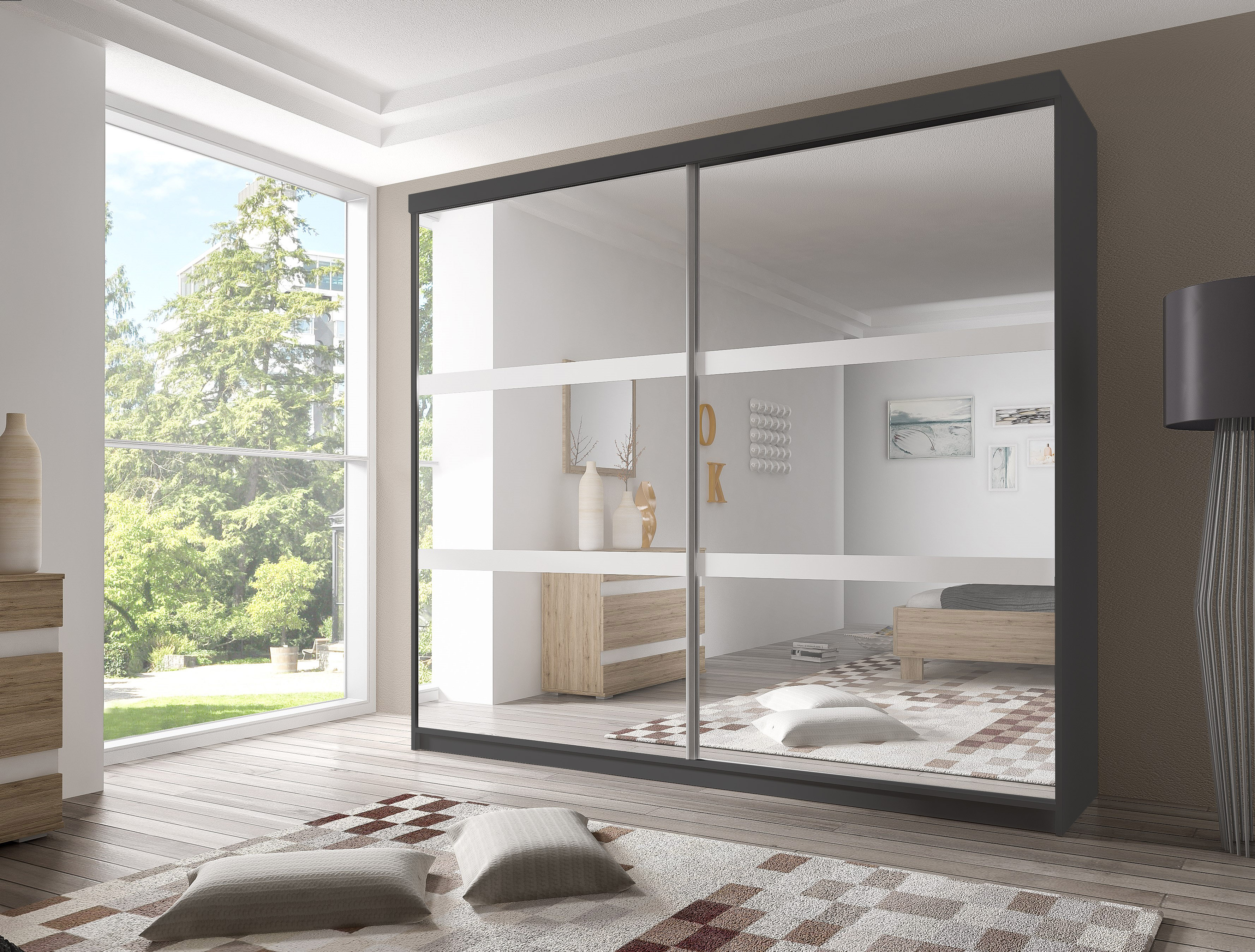 Dulap de haine Mebur 10 230 (negru + alb + Oglindă)