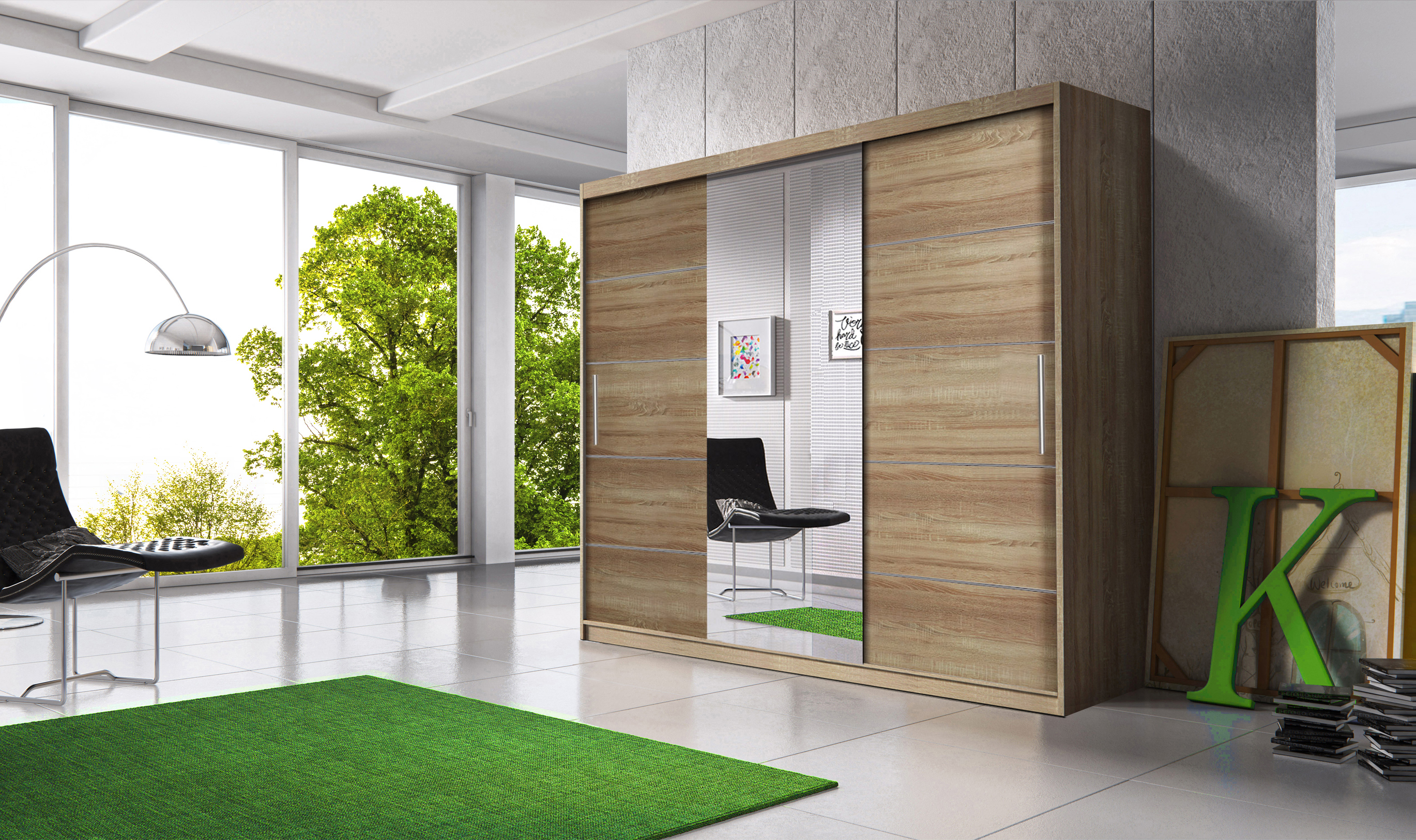 Dulap de haine Mebur 23 230 (stejar sonoma + stejar sonoma + Oglindă)