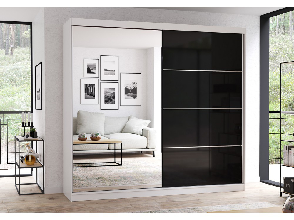 Dulap de haine Mebur 31 230 (alb + negru lucios)