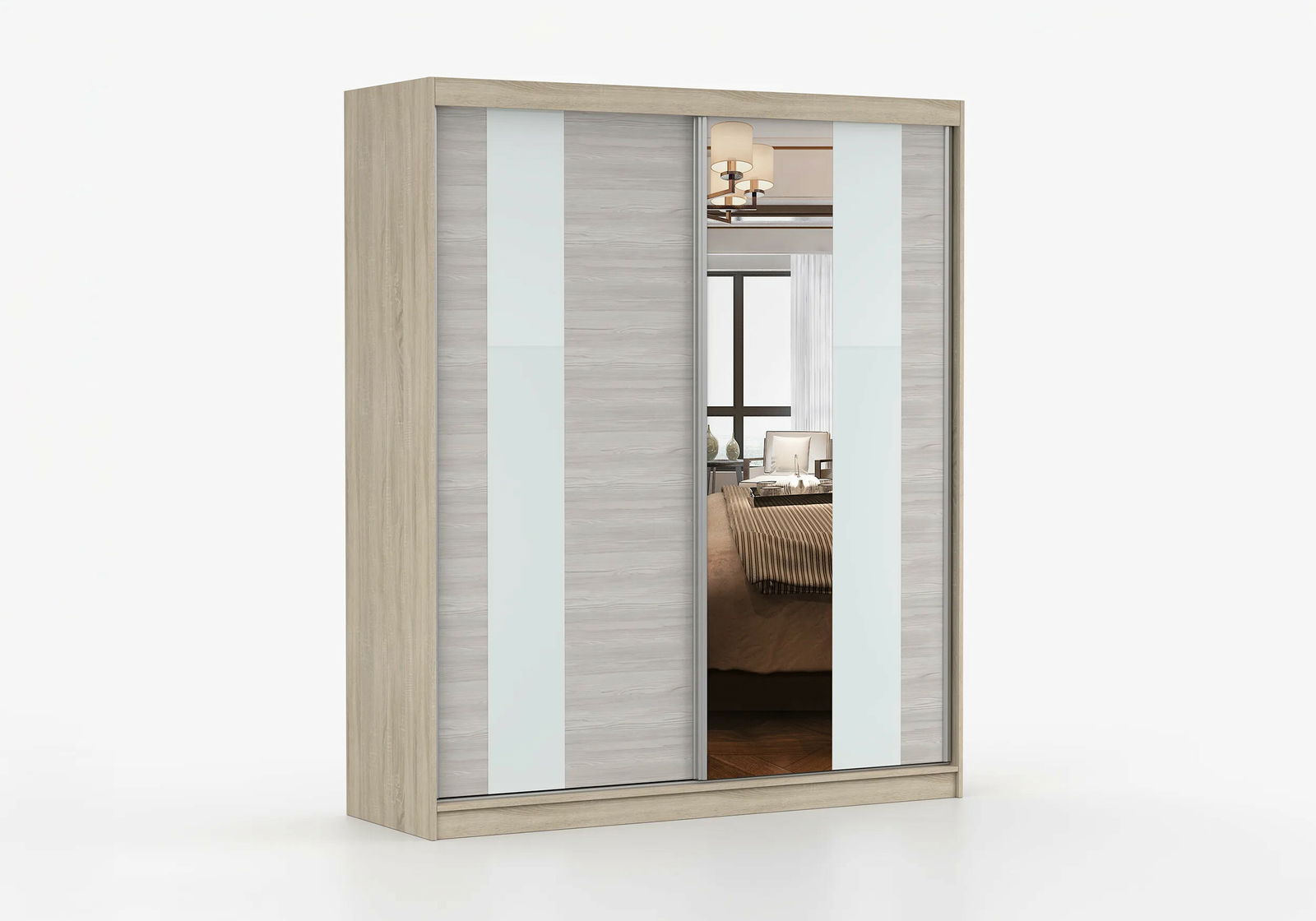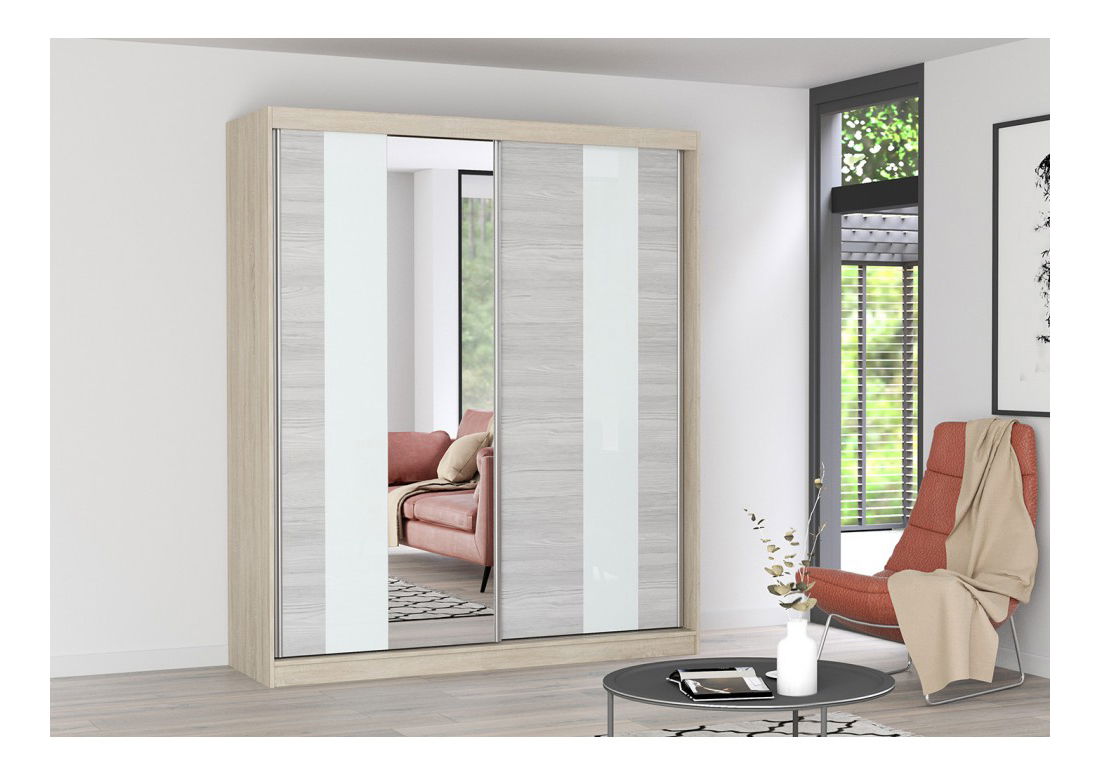 Dulap de haine Mebur 32 180 (stejar sonoma + kathult + sticlă albă + Oglindă)