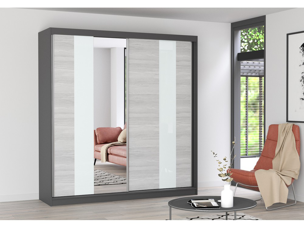 Dulap de haine Mebur 32 200 (grafit + kathult + sticlă albă + Oglindă)