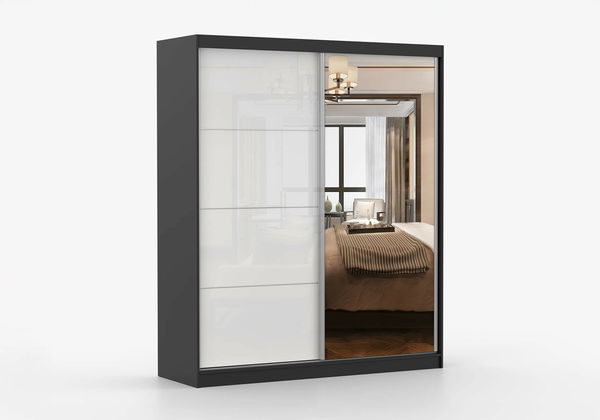 Dulap de haine Mebur 35 180 (negru + Oglindă + alb lucios)
