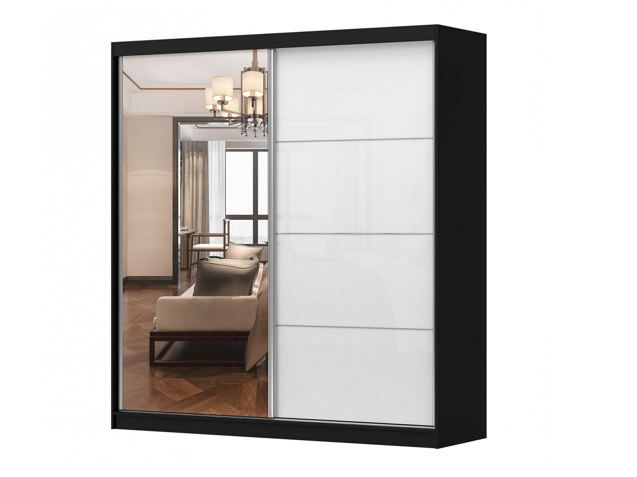 Dulap de haine Mebur 35 200 (negru + Oglindă + alb lucios)