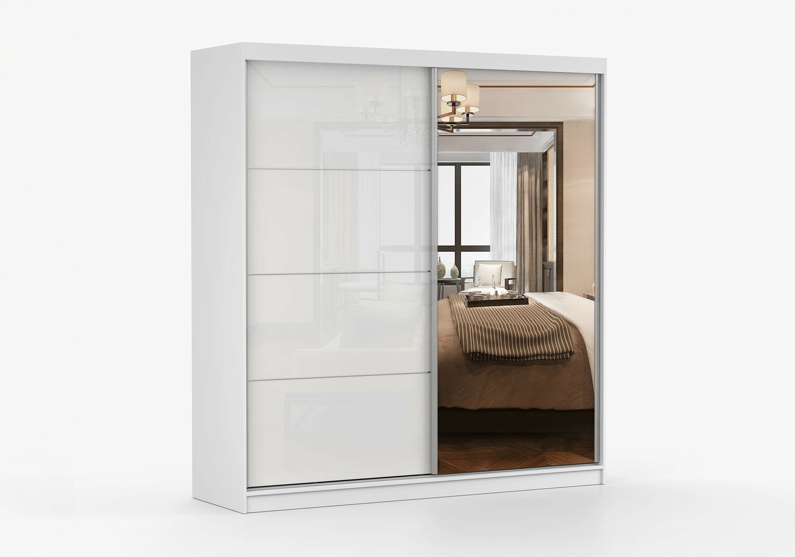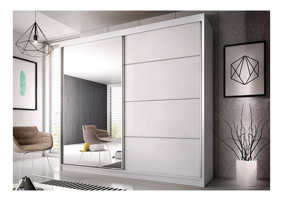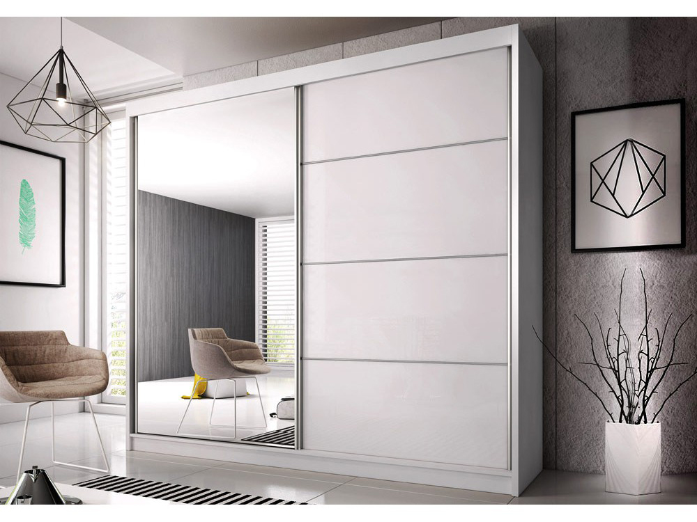 Dulap de haine Mebur 35 230 (alb + Oglindă + alb lucios)