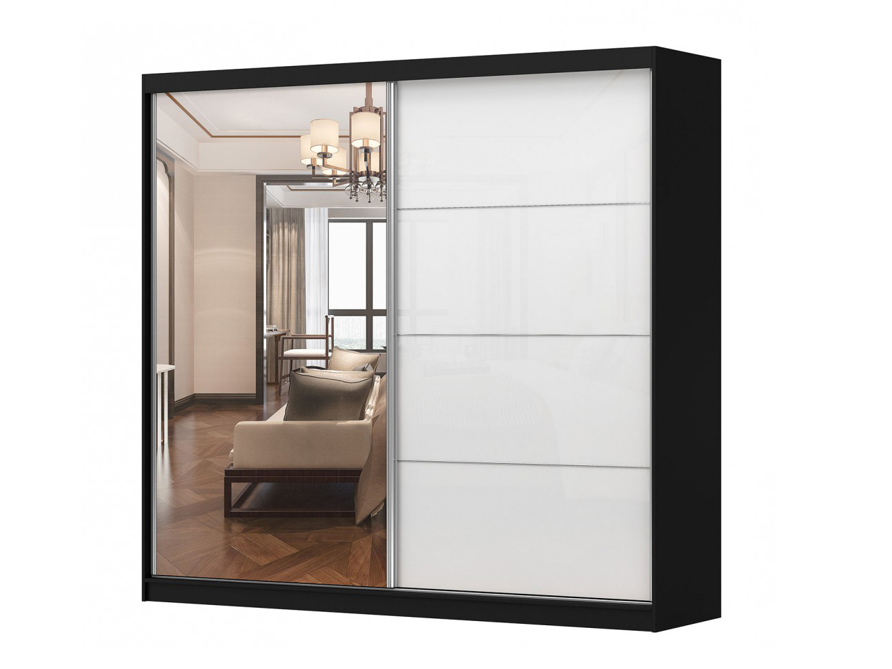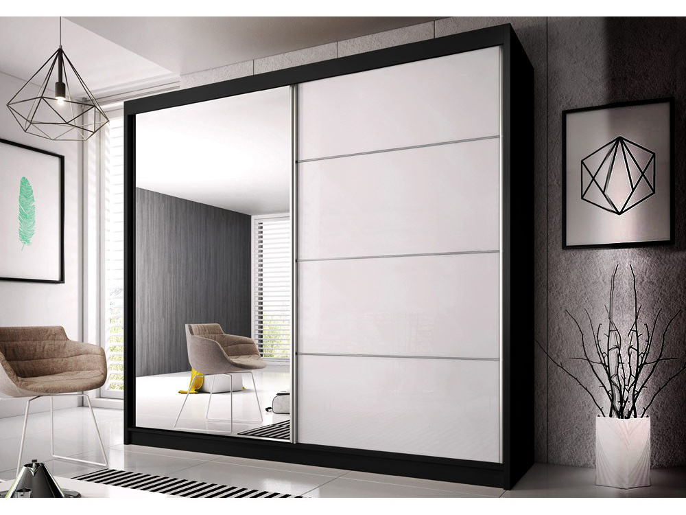 Dulap de haine Mebur 35 230 (negru + Oglindă + alb lucios)
