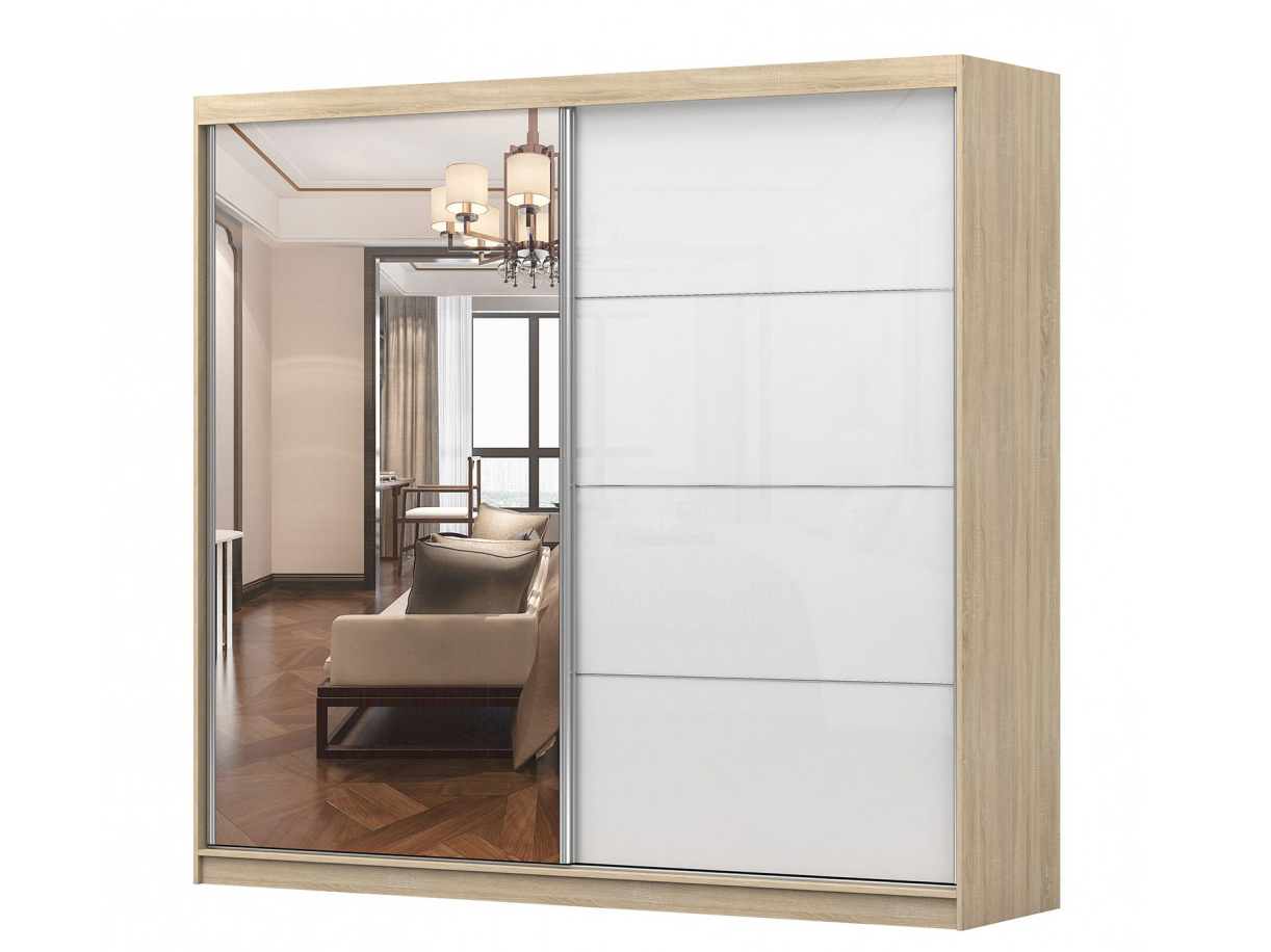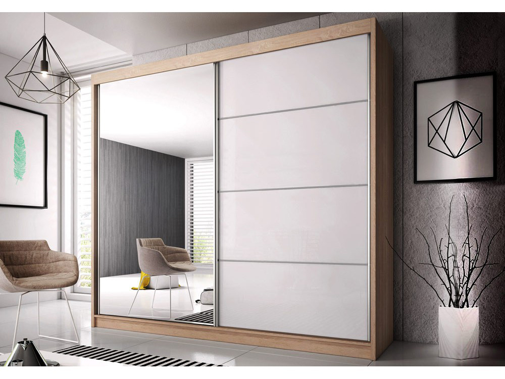Dulap de haine Mebur 35 230 (stejar sonoma + Oglindă + alb lucios)