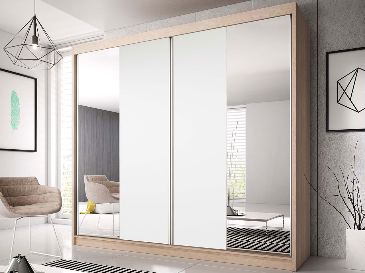 Dulap de haine Mebur 38 200 (stejar sonoma + alb + Oglindă)