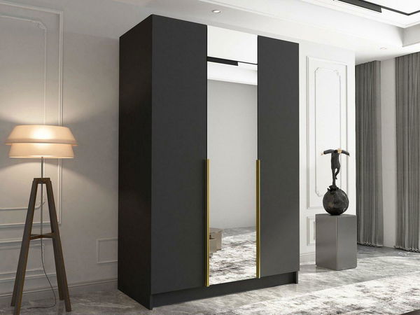Dulap de haine Merpata II (Negru + auriu) (cu oglindă)