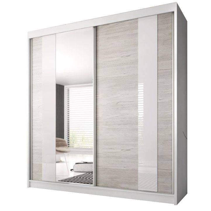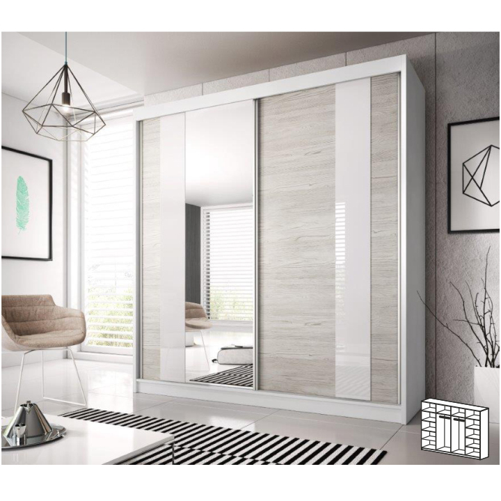 Dulap de haine cu uși glisante și oglindă. În interior se află bara pentru umerașe și rafturi.