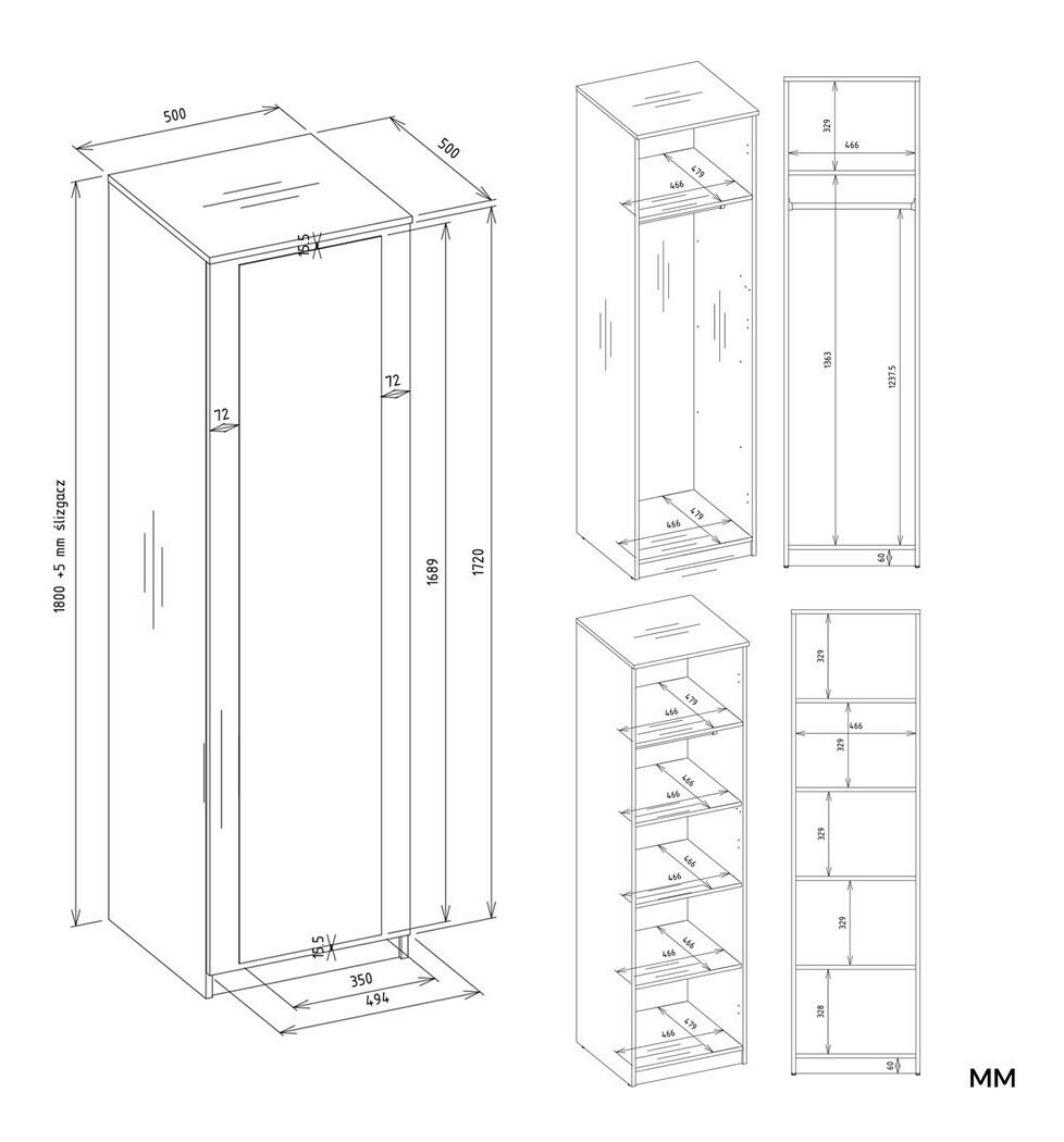 Dulap de haine Musecalo 2 (alb) (cu oglindă)