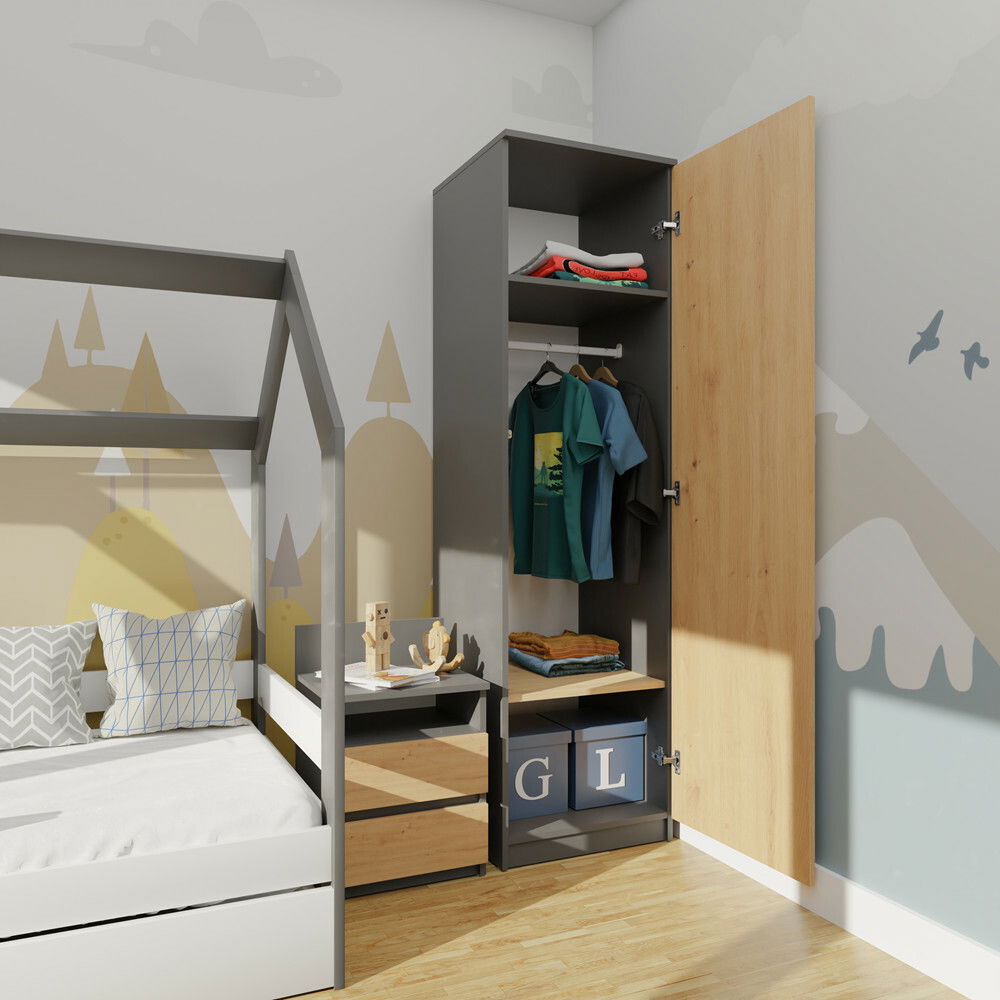 Dulap de haine Musecalo 2 (antracit + stejar artisan)