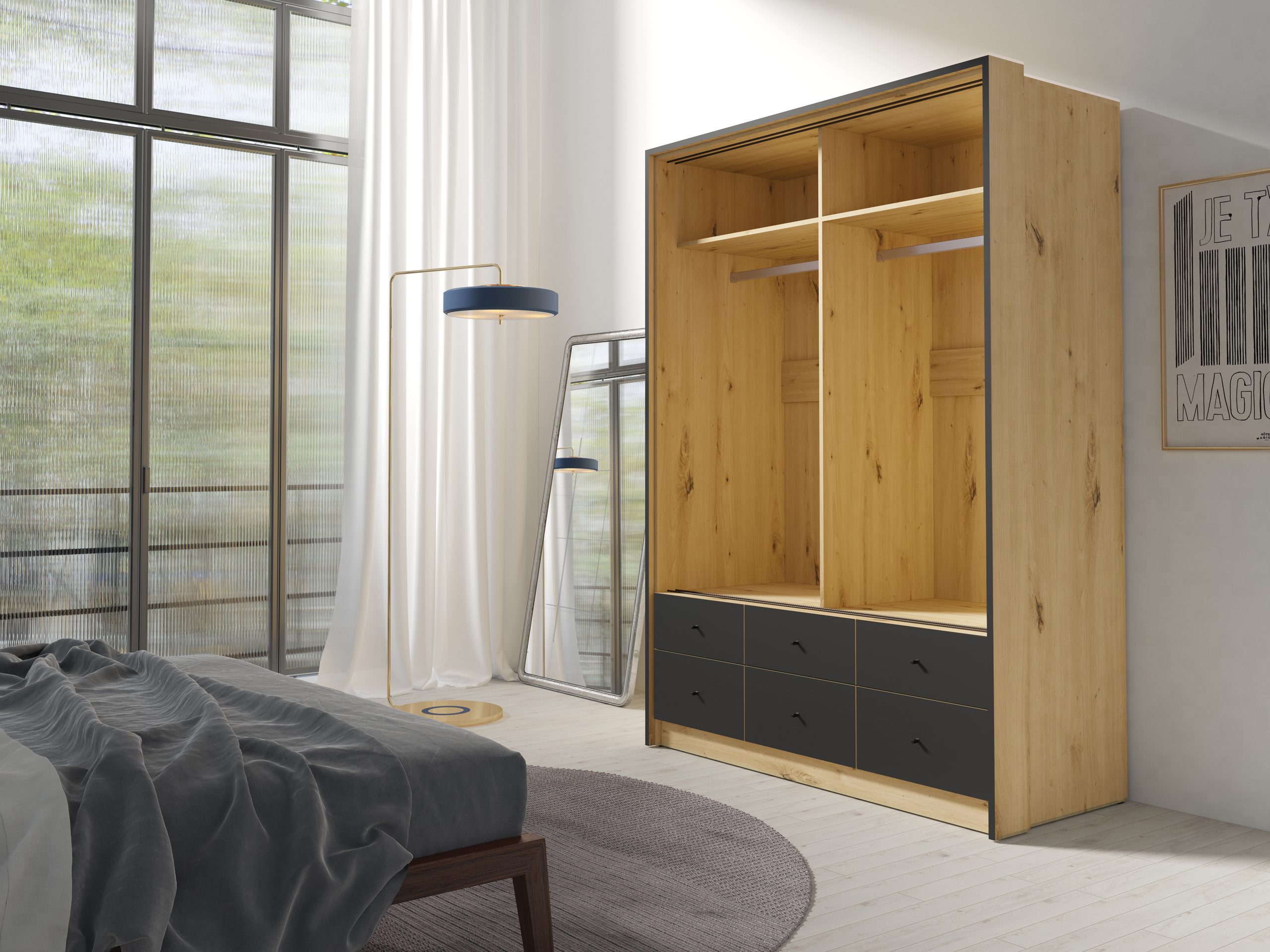 Dulap de haine Narcius (Stejar artisan + Negru)
