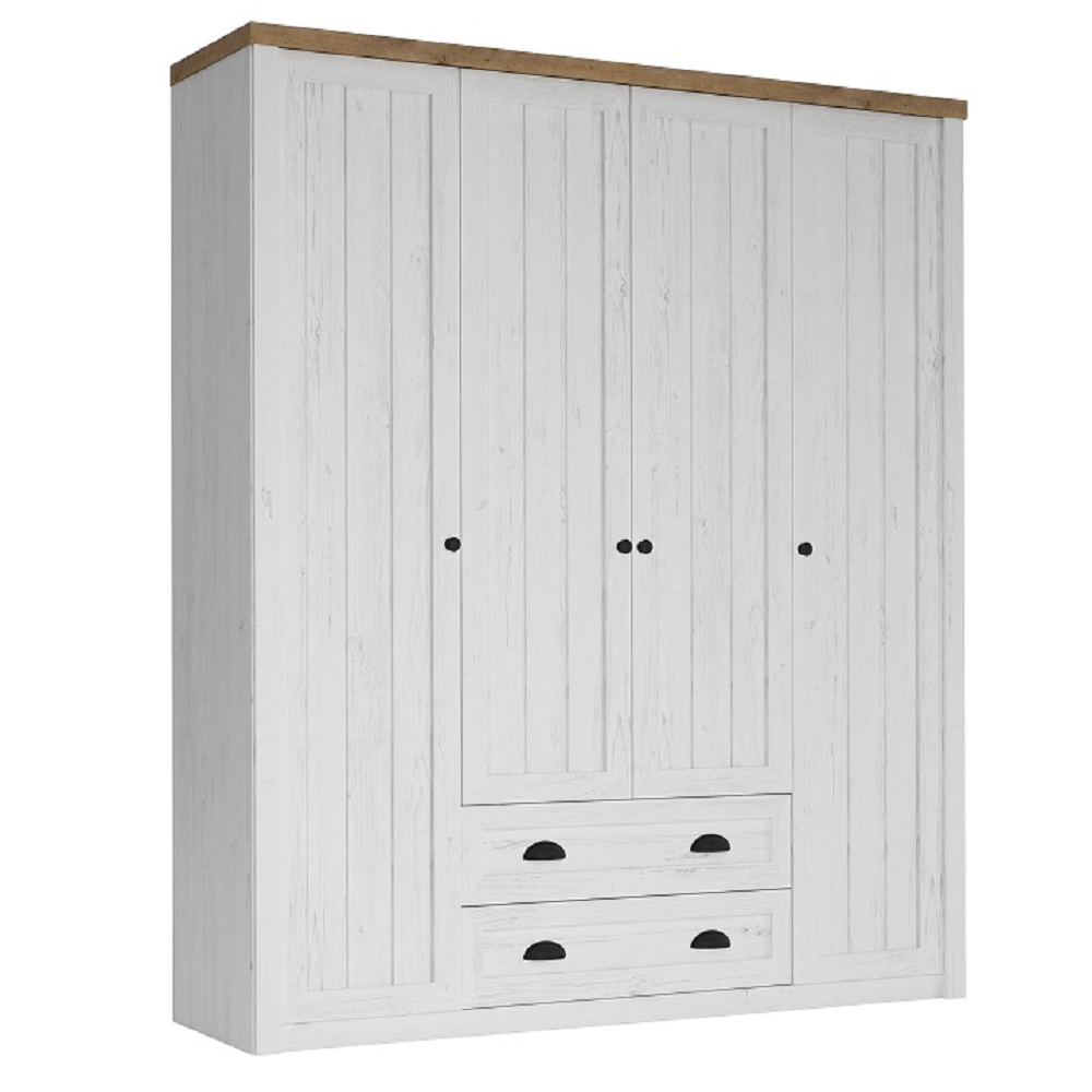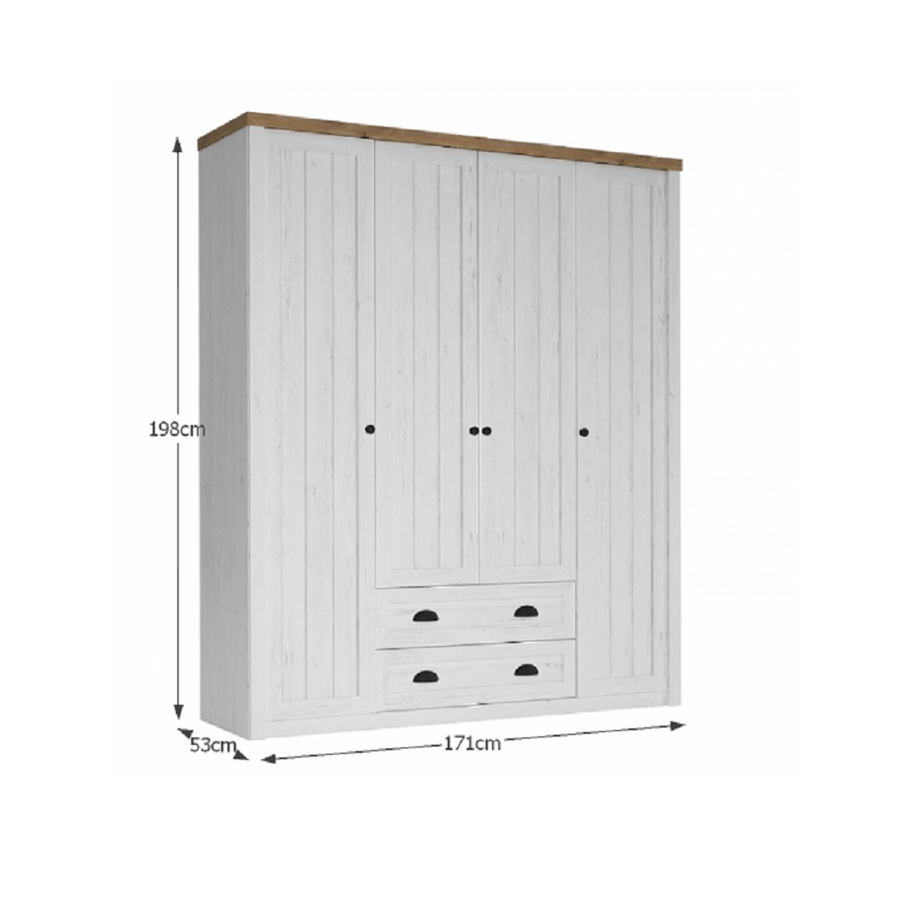 Amenajați îmbrăcămintea și accesoriile în acest dulap minunat și spațios, în stilul provensal. Este formată din patru piese, iar în mijloc în partea inferioară se află două sertare. Versiunea color plăcută va lumina dormitorul dvs. sau camera de zi.