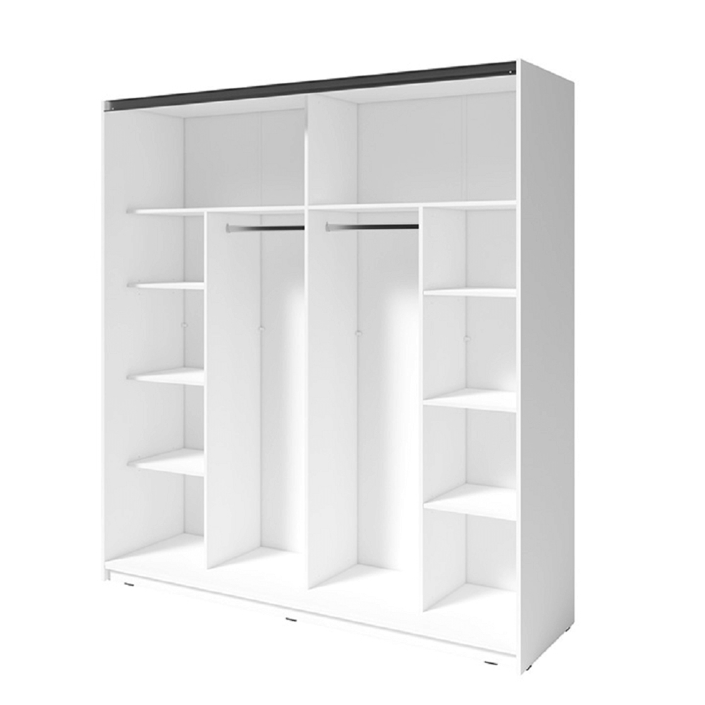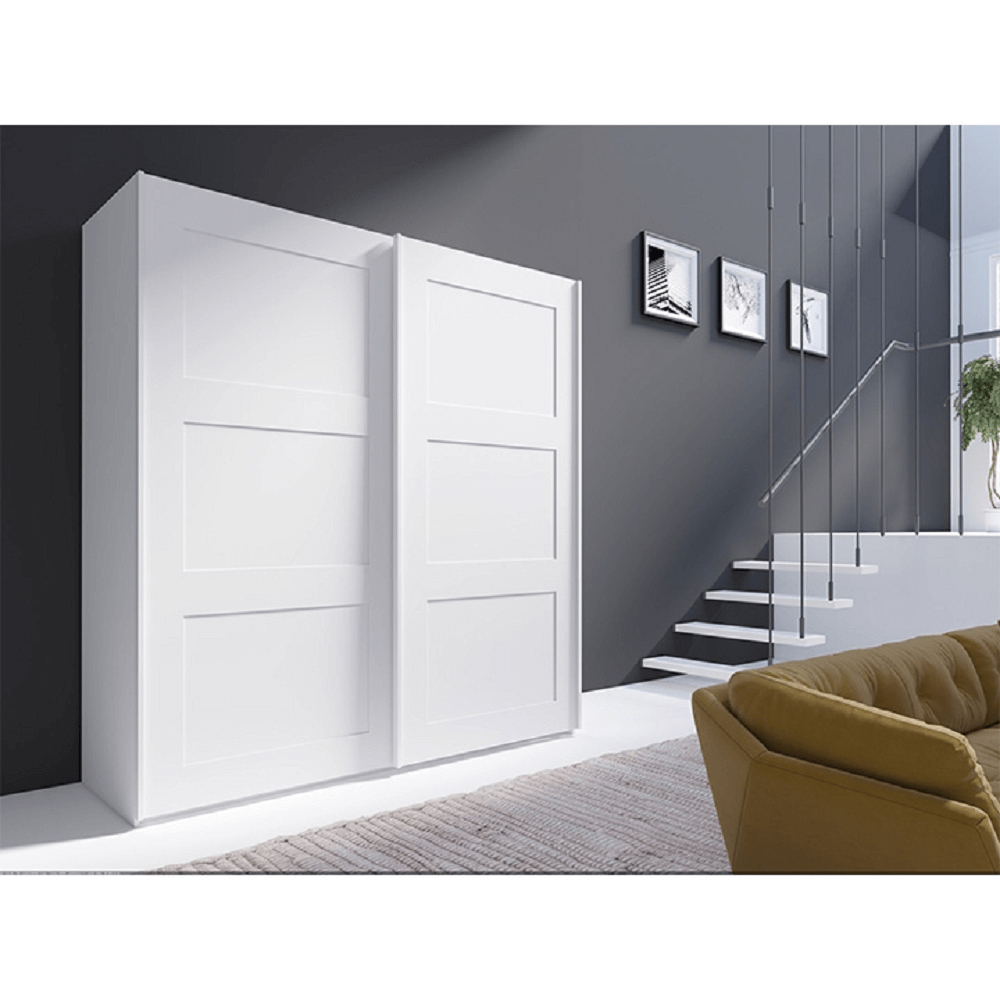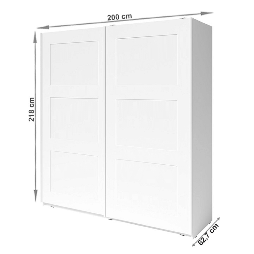 Dulapul RAMIAK cu două uși glisante este unic în toate aspectele. Acest dulap modern și elegant este realizat din Pal de lemn laminat cu structură internă mai groasă, într-o versiune color de alb. Este echipat cu două polițe largi în partea superioară și cu patru polițe mai înguste în partea dreaptă și stânga a dulapului. Incluse în pachet sunt și două bare de umerașe. Bucurați-vă de acest dulap absolut perfect cu două uși RAMIAK.