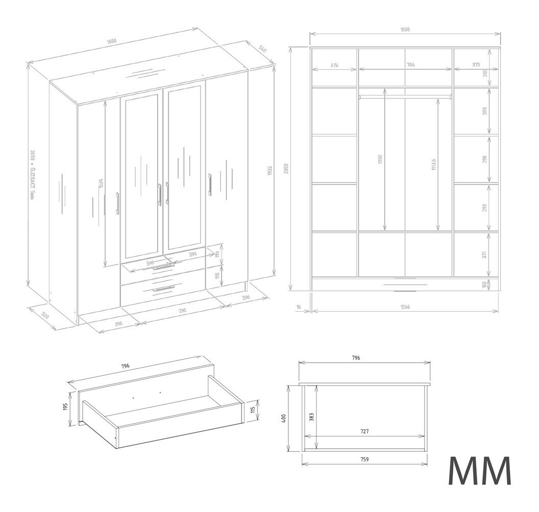 Dulap de haine Rigidez 3 (cashmir) (cu oglindă)