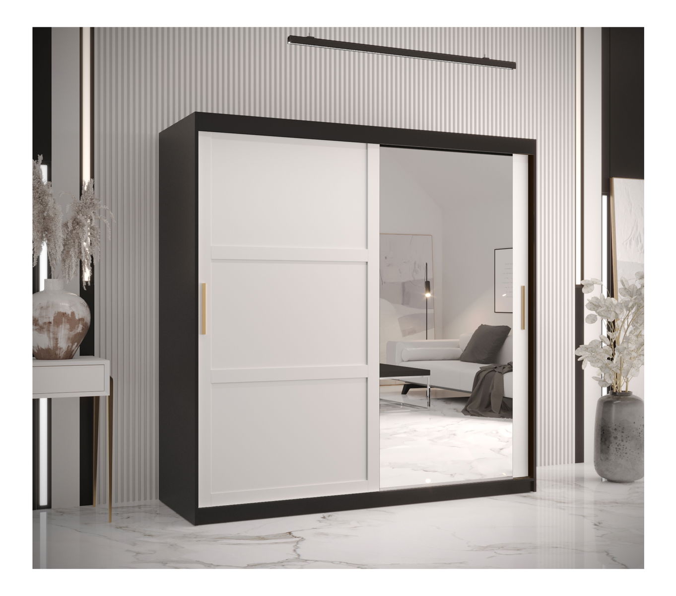 Dulap de haine Riven 2 180 (negru mat + alb mat) (cu oglindă)