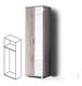 Dulap de haine cu două uși conceput primar pentru holuri în schema de culori Stejar Canyon în combinație cu culoarea albă de înalt luciu high gloss pentru ușa din partea stângă. Înăuntru este plasată o bară pentru umerașe care se află sub raftul superior și are capacitate maximă de 5 kg.