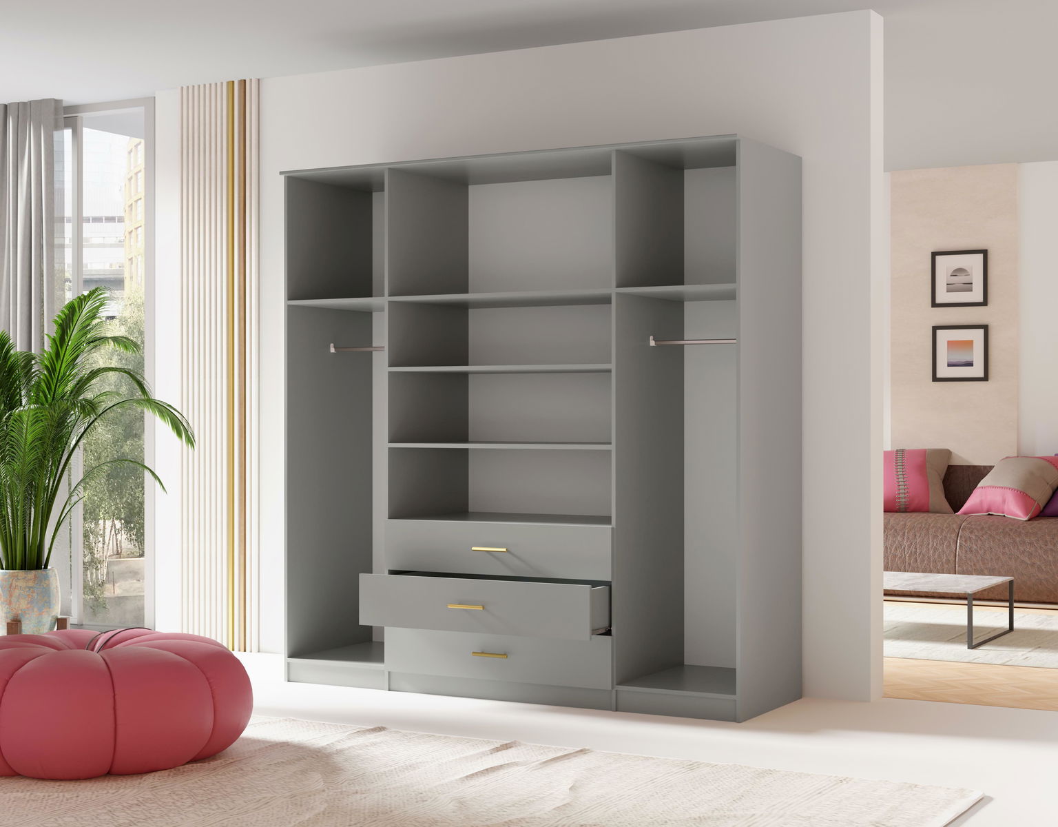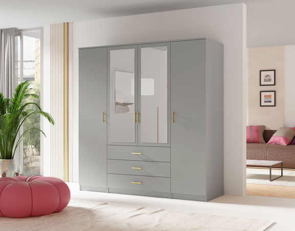 Dulap de haine Selforta 4D (Gri) (cu oglindă)