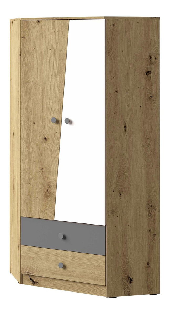Dulap de haine Seraphina WK2 (stejar artisan + alb + gri)